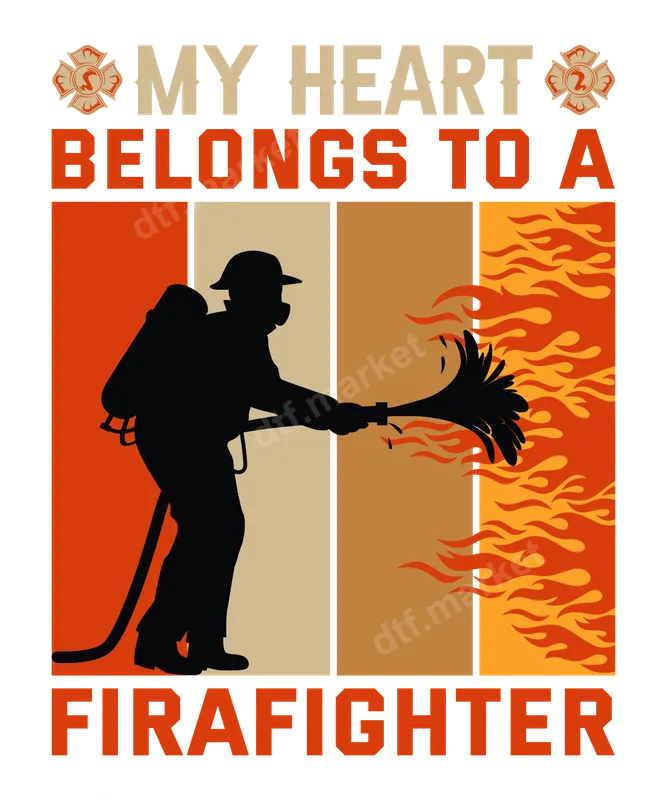See allThe design features the bold text "MY HEART BELONGS TO A FIREFIGHTER" with a striking silhouette of a firefighter battling vibrant flames. Fire department insignias flank the top text, adding an authentic touch. This powerful DTF transfer captures the courageous spirit and dedication of firefighters, making it a perfect statement piece. It's a high-quality, ready to press design that brings immediate impact to any garment, celebrating these everyday heroes. This meaningful ready to press transfer is ideal for anyone who deeply supports firefighters – partners, family members, friends, or even dedicated community advocates. It makes a thoughtful gift for birthdays, anniversaries, Mother's Day, Valentine's Day, or simply to show appreciation for their selfless service. Perfect for local parades, fire department fundraisers, or everyday wear to proudly display your connection to these brave individuals. Our versatile direct to film transfer can be applied to a wide range of materials, including cotton, polyester, and various fabric blends. For best results, use a heat press at 300-325°F for 15 seconds with medium, even pressure. This heat press design is also compatible with a household iron with careful application. Enjoy a hassle-free customization process with no weeding or layering required, making it simple and quick to create personalized apparel. Experience professional-grade results with our premium iron on transfers. These apparel transfers boast vibrant, true-to-color prints that resist cracking and peeling, ensuring exceptional longevity. The soft-touch finish integrates seamlessly with fabric, providing comfort and a high-end feel. Crafted with durable DTF film and a strong adhesive, your custom transfer will stand out with outstanding quality and durability.