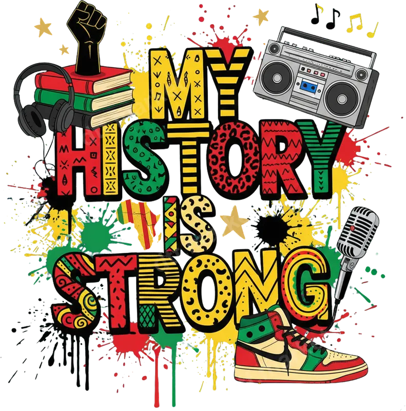 See allShowcase powerful cultural pride with our 'My History Is Strong' DTF transfer. This vibrant, ready to press design features bold, patterned typography in Pan-African red, green, and yellow, set against dynamic paint splatters. Iconic imagery includes a raised fist, books, headphones, a vintage boombox, microphone, stylish sneaker, and an Africa map, creating a compelling visual narrative celebrating heritage and strength. This high-quality direct to film transfer is perfect for making a profound statement. This empowering heat transfer is ideal for anyone celebrating Black History Month, Juneteenth, or everyday cultural pride. It makes a meaningful statement for activists, educators, students, and hip-hop culture enthusiasts. Perfect as a thoughtful gift for family and friends, or to create custom apparel for cultural events, rallies, or simply to express your identity with conviction. Stand tall and let your history shine through your style. Our durable iron on transfer is designed for effortless application on a wide range of fabrics, including cotton, polyester, and their blends. Simply use a heat press at 300-325°F for 15 seconds with medium pressure, then cold peel for a professional finish. While a heat press is recommended for best results, a household iron can also be used with care. Enjoy the convenience of a ready to press design with no tedious weeding required. Experience superior quality with our professional-grade apparel transfer. The colors are incredibly vibrant, resistant to cracking and fading, ensuring your design looks fresh wash after wash. Its soft-to-touch finish provides maximum comfort, feeling like part of the fabric. Each heat press design uses premium DTF film and strong adhesive for a lasting, high-definition result.