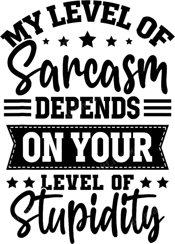 See allShow off your dry wit with this bold "My Level of Sarcasm Depends On Your Level Of Stupidity" DTF transfer. Featuring a dynamic mix of fonts, decorative stars, and a stitched banner graphic, this design is perfect for anyone who appreciates a good dose of humorous honesty. This ready to press design allows for quick and easy customization of your favorite apparel. This design is ideal for those with a sharp tongue and a quick mind. It makes a fantastic gift for friends, family, or coworkers who share your sarcastic sense of humor. Perfect for casual wear, social gatherings, or simply making a statement without saying a word, this heat press transfer is sure to get a chuckle. Applying this iron on transfer is straightforward. It works beautifully on a wide range of materials, including cotton, polyester, and cotton/poly blends. For best results, use a heat press at 300-325°F for 15 seconds with medium pressure. It can also be applied with a household iron, following included instructions. No weeding or layering required, making customization a breeze. Our professional-grade DTF transfers deliver vibrant, long-lasting results that are crack-resistant and soft to the touch. Each t-shirt transfer is printed with premium inks on high-quality film, ensuring strong adhesion and durability through countless washes. Get ready to transform your garments with a design that speaks volumes.