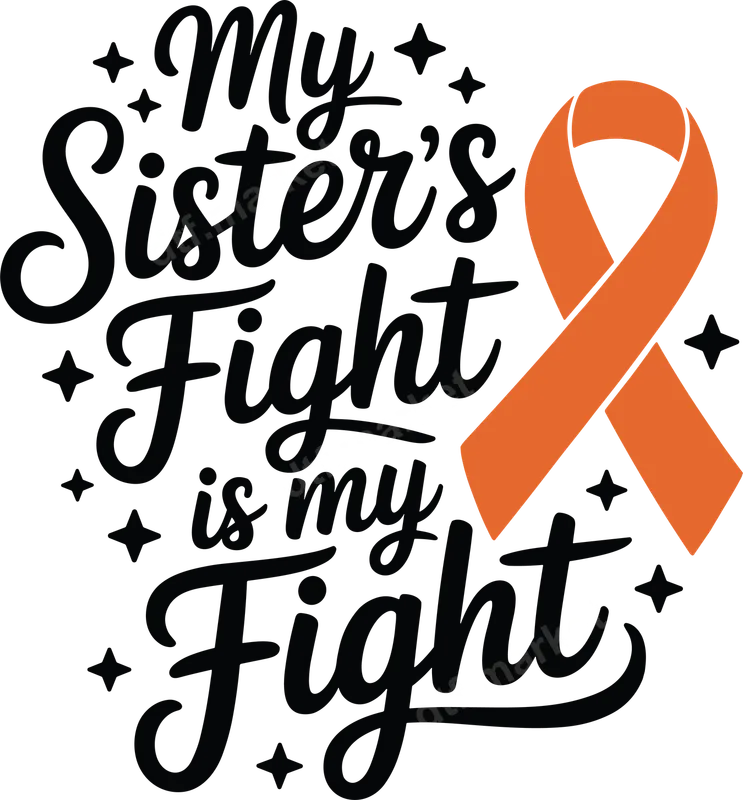 See allThis powerful DTF transfer features the inspiring quote "My Sister's Fight is My Fight" in a beautiful, flowing script, adorned with an orange awareness ribbon and sparkling accents. It’s a ready to press design that beautifully conveys solidarity and unwavering support for a loved one. This heat press ready design allows you to create meaningful apparel quickly and easily, celebrating strength and resilience. This heat transfer is perfect for anyone looking to honor and support a sister battling a serious illness or life struggle, especially those represented by the orange awareness ribbon such as Leukemia, Kidney Cancer, or Multiple Sclerosis. Ideal for awareness walks, fundraising events, family gatherings, or as a thoughtful gift to a sister, sibling, or friend standing strong. Create custom t-shirts, tote bags, or hats to spread awareness and show your united front. Applying this professional-grade direct to film transfer is straightforward. It adheres perfectly to a wide range of materials including cotton, polyester, and various fabric blends. Simply use a heat press at 300-325°F for 15 seconds with medium pressure, or apply it with a household iron for stunning results. There's no tedious weeding required, making your crafting process smooth and efficient. Experience exceptional quality with vibrant colors and sharp details that truly pop. Our DTF transfers are designed to be crack-resistant, peel-resistant, and offer a soft, smooth feel on any garment. Each iron on transfer is made using premium DTF film and strong adhesive, ensuring your custom transfer withstands countless washes and daily wear, maintaining its powerful message and aesthetic appeal.