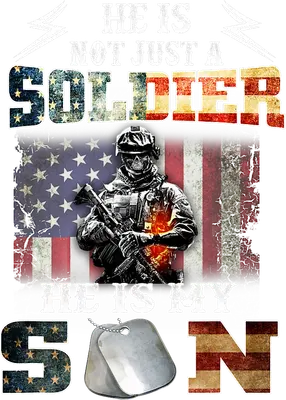 See allThis powerful DTF transfer proudly declares, 'HE IS NOT JUST A SOLDIER HE IS MY SON,' set against a rugged, distressed American flag. The design features a determined, skull-faced soldier clutching a rifle, with an intense, fiery glow near his heart, embodying unwavering commitment. The words "SOLDIER" and "SON" are artistically rendered with patriotic flag textures, complemented by realistic dog tags, making this an impactful and ready to press design that celebrates military dedication and profound family love. Perfect for military parents, proud family members, and those who support our troops, this iron on transfer is an ideal way to honor the brave soldiers in your life. It's a thoughtful gift for Veterans Day, Memorial Day, the 4th of July, military homecomings, or simply to show year-round patriotic pride. Small apparel businesses and crafters will find this heat transfer design a powerful addition for creating meaningful custom gifts and apparel. Applying this heat press transfer is simple and rewarding. It adheres beautifully to fabrics like cotton, polyester, blends, and even nylon. Just use a heat press at 300-325°F for 15 seconds with medium pressure, or apply with a household iron. No weeding required – just peel and press for instant customization. Transform custom t-shirts, hoodies, sweatshirts, tote bags, or aprons into statements of pride. For lasting durability, wash inside out and tumble dry low. Experience premium quality with this ready to press transfer. It boasts vibrant, full-color printing with exceptional fine detail, ensuring your design truly stands out. Our DTF transfers are crack-resistant and soft to the touch, avoiding the heavy, stiff feel of traditional vinyl. Each direct to film transfer is meticulously printed on high-grade DTF film with a robust adhesive backing, guaranteeing professional, long-lasting results every time.