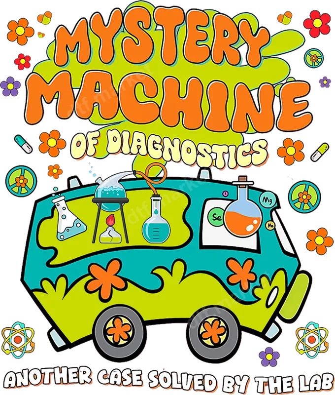 See allThis vibrant DTF transfer brings a playful, retro vibe to the serious world of diagnostics. Featuring a groovy, Scooby-Doo-inspired van, emblazoned with "MYSTERY MACHINE OF DIAGNOSTICS" and "ANOTHER CASE SOLVED BY THE LAB," this design is perfect for those who bring a sense of adventure to their scientific pursuits. Adorned with laboratory beakers, atom symbols, and peace sign flowers, this direct to film transfer is a visually engaging and ready to press design that captures the spirit of discovery. Ideal for lab technicians, medical technologists, pathologists, and any healthcare professional with a good sense of humor, this design makes a fantastic gift for colleagues, students, or yourself. Wear it proudly during Lab Week, at medical conferences, or as everyday casual wear to show off your passion for science and problem-solving. It's also a unique graduation gift for aspiring scientists or medical students. Applying this high-quality heat transfer is simple and efficient. Our transfers work flawlessly on a wide range of materials, including cotton, polyester, and various blends. For best results, use a heat press at 300-325°F for 15 seconds with medium pressure. It can also be applied with a household iron. Best of all, there's no tedious weeding required, making your customization process quick and hassle-free. Crafted with professional-grade DTF film, this t-shirt transfer offers exceptional durability and a superior finish. Expect incredibly vibrant colors that pop, crack-resistant flexibility, and a soft-to-the-touch feel that integrates smoothly with your chosen garment. This heat press ready design ensures your apparel stays comfortable and looks great wash after wash, maintaining its professional appearance.