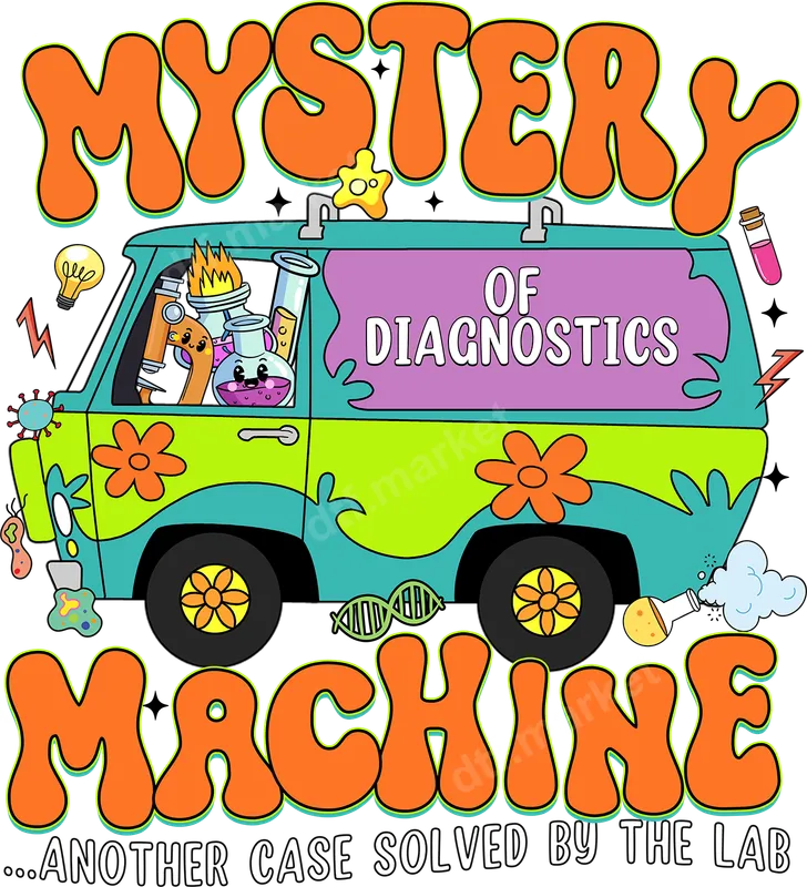 See allThis vibrant "Mystery Of Diagnostics Machine" DTF transfer reimagines a classic pop culture van with a scientific twist. Featuring playful beakers, test tubes, and DNA strands, the design proclaims "MYSTERY OF DIAGNOSTICS MACHINE ...ANOTHER CASE SOLVED BY THE LAB" in a fun, retro font. This unique graphic blends nostalgic charm with scientific humor, making it a perfect ready to press transfer for anyone in the medical or laboratory field who loves to solve mysteries. The bright, groovy colors ensure your apparel will stand out. This direct to film transfer is ideal for medical lab technicians, diagnosticians, pathologists, microbiologists, and other healthcare professionals. It's a fantastic gift for graduation celebrations, birthdays, appreciation events, or just a fun way to express pride in your work. Perfect for team shirts for a lab, or a thoughtful present for a science teacher. Wear it to conventions, casual Fridays, or while conducting your own scientific investigations! Our high-quality DTF transfer adheres flawlessly to a wide range of fabrics including cotton, polyester, and their blends. For best results, apply with a heat press at 300-325°F for 15 seconds with medium pressure, then cold peel. For those without a heat press, a household iron can also be used following careful instructions. Enjoy the convenience of a ready to press design that requires absolutely no weeding, saving you time and effort. Experience superior quality with this durable heat press design. Our premium DTF transfers boast incredibly vibrant colors, crisp details, and exceptional wash durability. The print is soft to the touch, flexible, and crack-resistant, ensuring your garment looks professional and lasts for countless wears and washes. Elevate your apparel with a professional-grade iron on transfer that truly makes a statement.