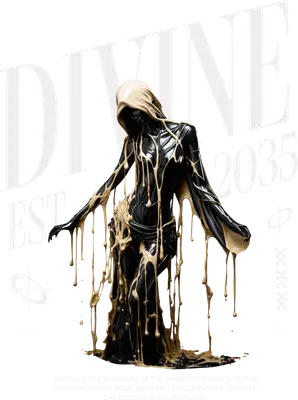 See allThis striking DTF transfer features a mysterious, hooded figure draped in a glossy black texture, dramatically covered in flowing, tan-colored liquid drips. With the faded 'DIVINE EST. 2035' text and abstract motifs in the background, this design evokes a powerful sense of modern mysticism and avant-garde fashion. It's a truly unique and artistic statement, perfectly ready to press onto your favorite garments. This thought-provoking design is perfect for those who appreciate contemporary art and urban fashion, making a bold statement. Ideal for streetwear brands, independent designers, artists, or anyone looking to express a unique, edgy aesthetic. This versatile iron on transfer makes an exceptional gift for friends with a distinctive style or can be the centerpiece for a new collection. Whether for a personal wardrobe refresh or bulk production, this heat transfer design adds instant artistic flair. Applying this stunning heat press transfer is simple and efficient. It adheres beautifully to a wide range of materials, including cotton, polyester, cotton-poly blends, and even nylon. Achieve professional results with a heat press set at 300-325°F for 15 seconds with medium pressure, or use a household iron. Forget weeding—just peel and press! It's perfect for custom t-shirts, oversized hoodies, tote bags, denim jackets, and even creative pillow covers. For lasting durability, simply wash garments inside out and tumble dry low. Our ready to press transfer boasts vibrant, full-color printing with crisp details that truly bring this artistic vision to life. Experience a premium feel—crack-resistant and soft to the touch, without the heavy, stiff feel of traditional vinyl. Each direct to film transfer is meticulously printed on high-quality DTF film, ensuring strong adhesion and professional-grade results that stand the test of time, making your apparel projects truly shine.