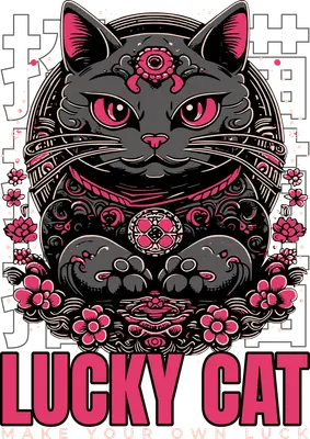 Mystical Lucky Cat DTF Transfer | Pink & Black Ornate Design