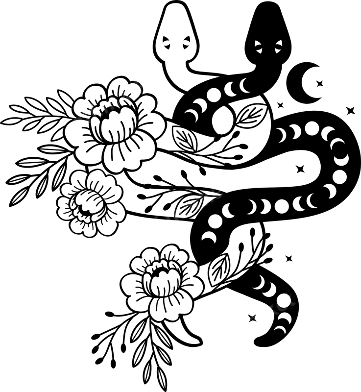 Mystical Snake & Floral Moon DTF Transfer | Ready to Press Design