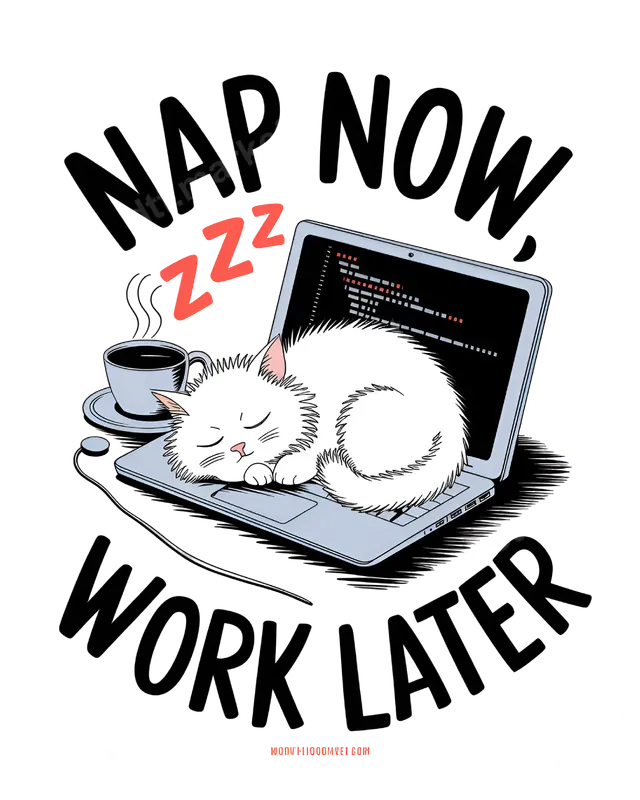 See allThis adorable DTF transfer captures the ultimate mood with a fluffy white cat peacefully napping on a laptop keyboard, a steaming coffee mug nearby, and "ZZZ" bubbles. The bold, playful text "NAP NOW, WORK LATER" perfectly expresses a universal sentiment. This vibrant, ready to press design is ideal for anyone appreciating rest before tackling tasks. Who isn't familiar with this feeling? This custom heat transfer is perfect for programmers, coders, IT professionals, college students, remote workers, or anyone who loves cats and embraces a relaxed approach to their workday. It makes a fantastic, relatable gift for birthdays, graduation, or just a fun treat for yourself on casual days. Applying this direct to film transfer is straightforward. It works seamlessly on cotton, polyester, and their blends. Simply use a heat press at 300-325°F for 15 seconds with medium pressure. A household iron can also be used. Enjoy a professional-quality finish without weeding, making it an easy iron on transfer for any project. Crafted with premium DTF film, this professional-grade apparel transfer ensures stunning, crack-resistant colors that remain vibrant wash after wash. The durable, soft-touch design integrates beautifully into any garment, offering a high-quality finish and strong adhesive for lasting wear. Get ready to press and proudly wear your mood!