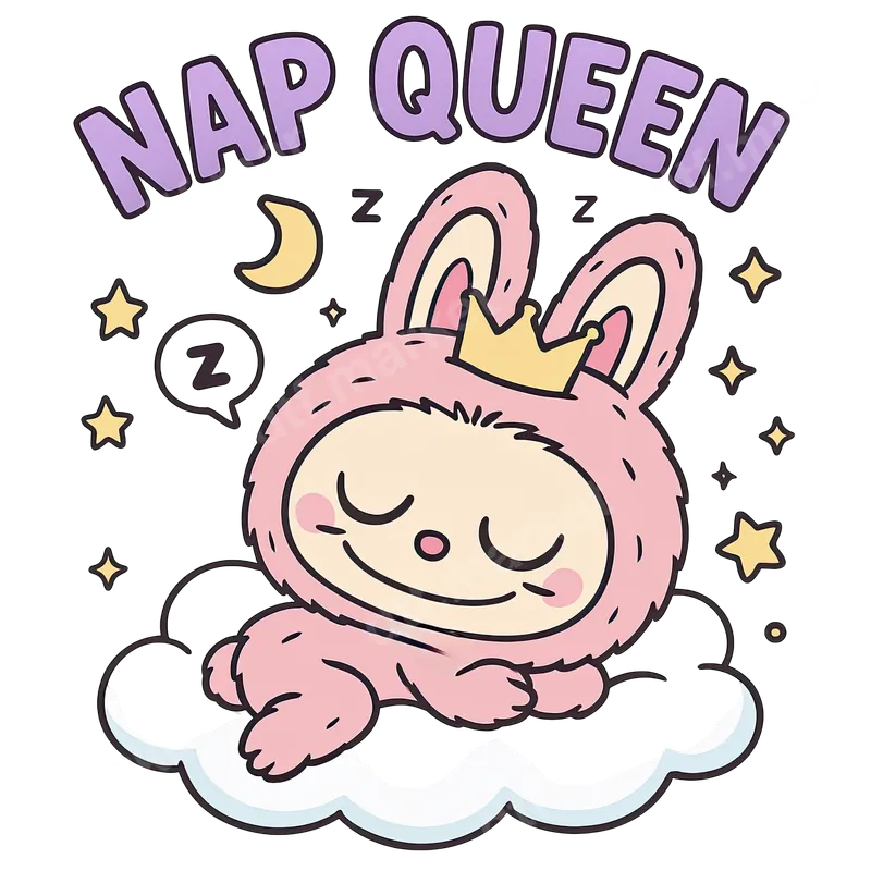 Nap Queen Kawaii Bunny DTF Transfer - Sleepy Pink Rabbit Iron On