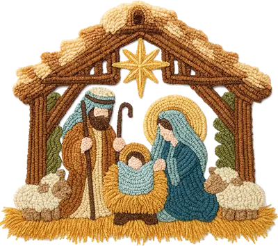 Nativity Scene Yarn Art DTF Transfer - Christmas Holiday Design