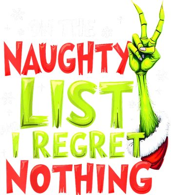 Naughty List I Regret Nothing DTF Transfer | Funny Grinch Hand Christmas Design