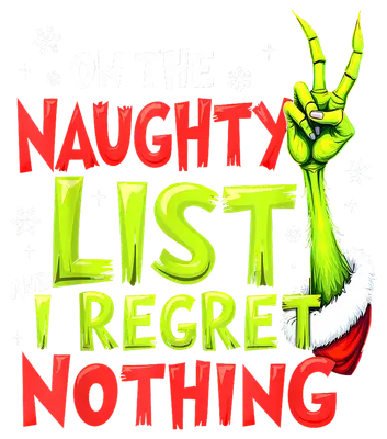 Naughty List I Regret Nothing Grinch Hand Christmas DTF Transfer