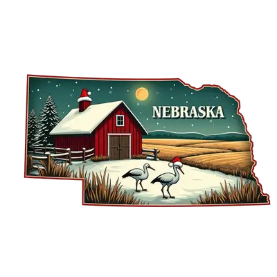 See allThis charming Nebraska Christmas DTF transfer captures the spirit of a winter wonderland within the iconic state outline. Featuring a cozy red barn with a Santa hat chimney, snow-dusted pine trees, and two festive Sandhill cranes also sporting Santa hats, this ready to press design is a heartfelt tribute to the Cornhusker State during the holidays. The word "NEBRASKA" is boldly displayed against a serene, moonlit snowy landscape, making it perfect for celebrating state pride. This unique design is the perfect iron on transfer for Nebraskans, proud residents, ex-pats, or anyone who loves the heartland during Christmas. Ideal for creating custom gifts for family and friends, or for small businesses looking for a distinctive heat transfer design for their holiday product line. Show your Nebraska love at holiday gatherings, family events, or simply everyday wear during the festive season. Applying this heat press transfer is simple and efficient. It adheres beautifully to a wide range of materials including cotton, polyester, cotton-poly blends, and even nylon. Use a heat press at 300-325°F for 15 seconds with medium pressure, or apply with a household iron. Enjoy the convenience of no weeding—just peel and press! Perfect for custom t-shirts, cozy hoodies, sweatshirts, sturdy tote bags, festive pillow covers, adorable baby onesies, playful aprons, and stylish denim jackets. For lasting durability, wash garments inside out and tumble dry on low. Our ready to press transfer ensures vibrant, full-color printing with exceptional fine detail. It's crack-resistant and soft to the touch, avoiding the heavy, stiff feel of traditional vinyl. Each direct to film transfer is produced on premium DTF film, coupled with a strong adhesive backing, guaranteeing professional-grade results that stand up to countless washes and wear.