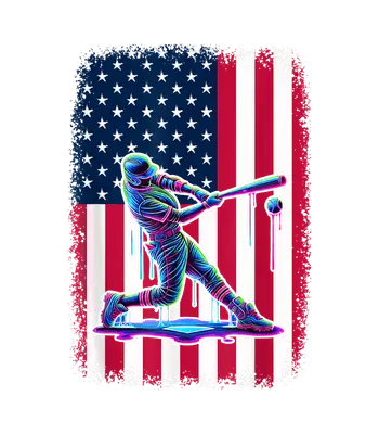 Neon Baseball Player DTF Transfer | American Flag Batting Design