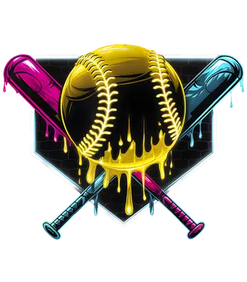 Neon Dripping Baseball & Crossed Bats DTF Transfer