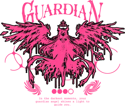 Neon Pink Guardian Angel DTF Transfer - Edgy Gothic Heat Press Design