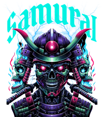 Neon Samurai Skull DTF Transfer | Cyberpunk Warrior Heat Press Design