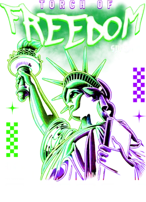 Neon Statue of Liberty DTF Transfer | Torch of Freedom Streetwear Design