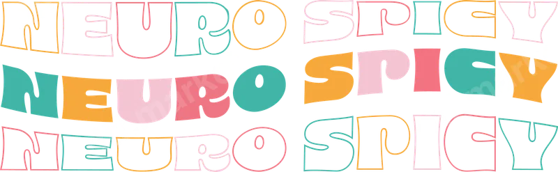 See allThis vibrant DTF transfer proudly features the phrase "Neuro Spicy" in a captivating groovy retro font. The design incorporates playful wavy text with a mix of solid and outline letters, rendered in a cheerful palette of teal, coral, and soft pink. This eye-catching direct to film transfer is a fun and affirming way to celebrate neurodiversity, making a bold statement for anyone ready to express their unique brain. It’s a completely ready to press design, eliminating complex steps. Perfect for neurodivergent individuals, their allies, or anyone who appreciates a touch of humor and self-acceptance, this iron on transfer is an ideal choice. It’s excellent for everyday wear, mental health awareness events, or as a thoughtful gift for a friend or family member who embraces their 'spicy' brain. Whether for a birthday, a pick-me-up, or simply to showcase your personality, this apparel transfer empowers you to wear your identity with pride. Applying this heat press design is incredibly simple. Designed for quick and easy application with a heat press (300-325°F for 15 seconds), it requires absolutely no weeding, saving you time and effort. Our premium heat transfer decals work flawlessly on a wide range of materials, including cotton, polyester, and their blends. Customize t-shirts, hoodies, tote bags, crewnecks, and even baby bodysuits with this fun graphic. Experience superior quality with every DTF transfer. Our transfers boast vibrant, true-to-color prints that are highly crack-resistant, ensuring your design looks fantastic wash after wash. The soft-touch finish integrates smoothly into the fabric, providing a comfortable feel. Crafted using premium DTF film and strong adhesive, this shirt design delivers lasting durability and a professional finish that will stand out.