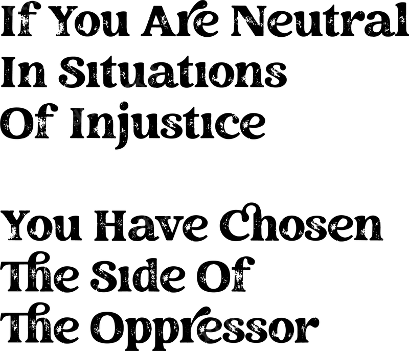 Neutrality in Injustice Quote DTF Transfer | Ready to Press Statement Heat Transfer