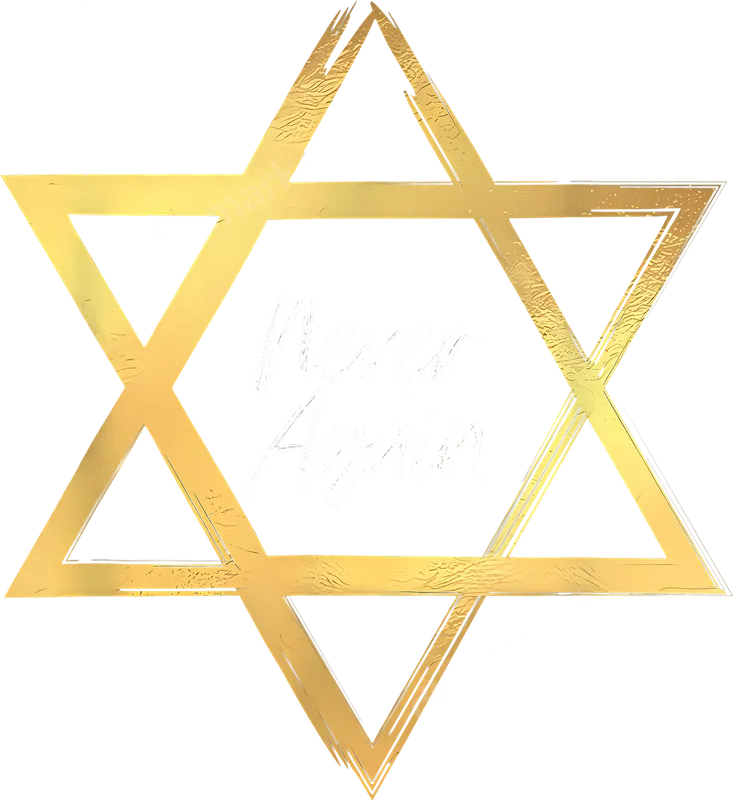 Never Again Star of David DTF Transfer | Gold Jewish Remembrance
