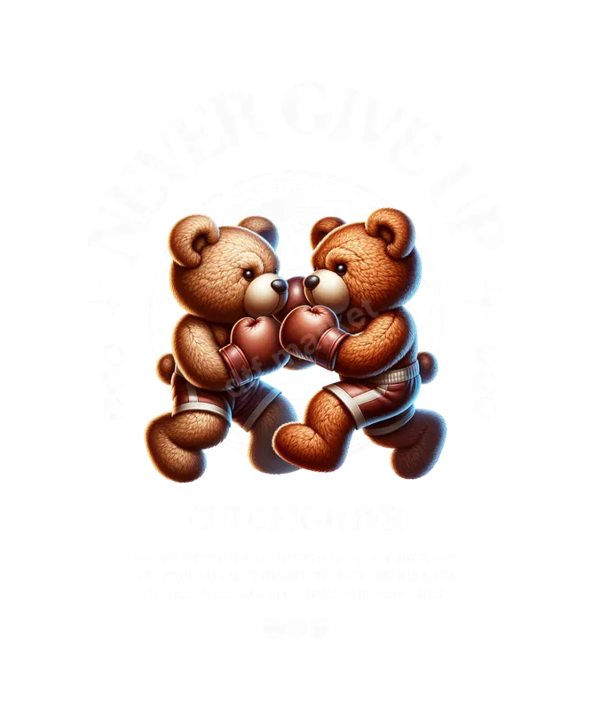 Never Give Up Boxing Bear DTF Transfer | Cute Fighter Apparel Design