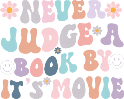 Never Judge a Book By Its Movie Groovy DTF Transfer | Retro Pastel Heat Press Design