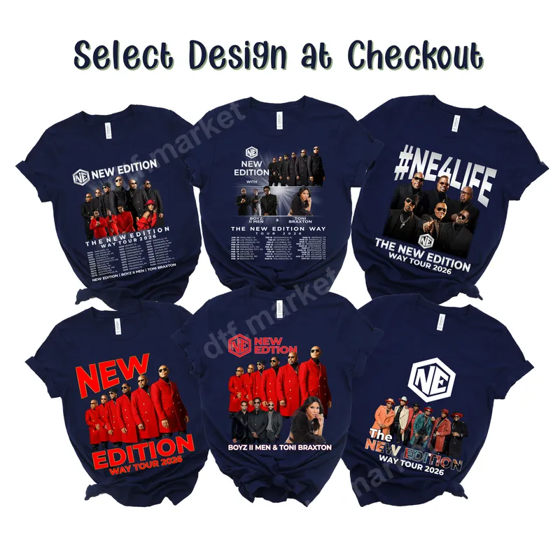 See allGet ready for "The New Edition Way Tour 2026" with these incredible DTF transfers. Featuring iconic designs of the legendary R&B group, New Edition, many options also include special guests like Boyz II Men and Toni Braxton, complete with tour dates. Each high-quality direct to film transfer is ready to press onto your favorite garments, creating unique, concert-ready merchandise. Celebrate your love for classic R&B with these dynamic designs. Perfect for dedicated New Edition fans, R&B music enthusiasts, and concert-goers gearing up for the 2026 tour. These heat press designs make excellent personalized gifts for birthdays or holidays. Whether attending a show, hosting a themed party, or showcasing musical taste, these apparel transfers are ideal for customizing shirts, jackets, or bags with the spirit of the tour. Our premium ready to press transfers adhere flawlessly to most fabrics: 100% cotton, polyester, and blends. For best results, use a heat press at 300-325°F for 15 seconds with medium pressure. These iron on decals also work with a household iron, offering flexibility for DIY projects. Enjoy hassle-free application with no weeding, making professional-looking apparel simple. Experience superior quality with every New Edition DTF transfer. Each design boasts vibrant colors, crisp detail, and a soft, crack-resistant feel. Made with professional-grade DTF film and strong adhesive, these transfers ensure excellent washability and longevity. Elevate your style with a professional heat press design that stands the test of time, keeping your custom garments looking fresh.