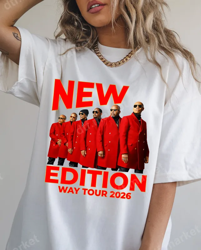 See allThis vibrant DTF transfer features the iconic R&B group New Edition, stylishly depicted in their signature red coats, alongside bold text proclaiming "NEW EDITION WAY TOUR 2026". It’s a perfect ready to press design for any fan looking to celebrate the legendary group and their upcoming tour. The design captures the essence of their enduring legacy and provides a fantastic way to create personalized merchandise. This New Edition heat transfer is ideal for loyal fans, R&B music enthusiasts, and anyone planning to attend their 2026 tour concerts. It makes an excellent gift for birthdays, holidays, or as a surprise for a fellow New Edition devotee. Perfect for concert apparel, fan meetups, or simply expressing your love for classic R&B, this versatile design offers a unique way to personalize your wardrobe or accessories. Our premium iron on transfer applies seamlessly to a wide range of fabrics, including cotton, polyester, and various blends. For best results, use a heat press at 300-325°F for 15 seconds with medium pressure, followed by a cool peel. While a heat press is recommended for professional application, this heat press design can also be applied with a household iron with careful attention. Enjoy the convenience of no weeding required – just press and go! Experience superior quality with this durable t-shirt transfer. Crafted using professional-grade DTF film, it delivers exceptionally vibrant colors that stand out and a soft, smooth finish that feels great to the touch. The strong adhesive ensures a long-lasting, crack-resistant design that will endure countless washes without fading, allowing you to proudly wear your New Edition gear for years to come.