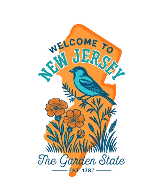 New Jersey Garden State Bird & Flowers DTF Transfer | Ready to Press Design
