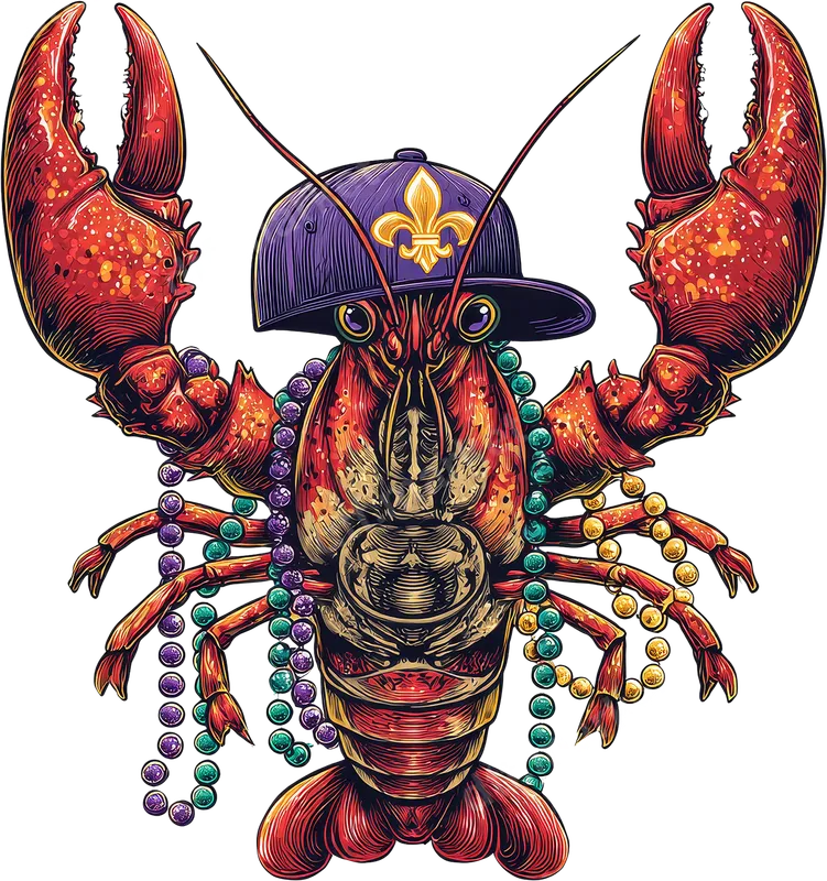 New Orleans Mardi Gras Crawfish DTF Transfer with Fleur De Lis Hat
