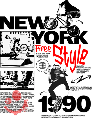 New York Freestyle BMX Skateboard 1990 Streetwear DTF Transfer