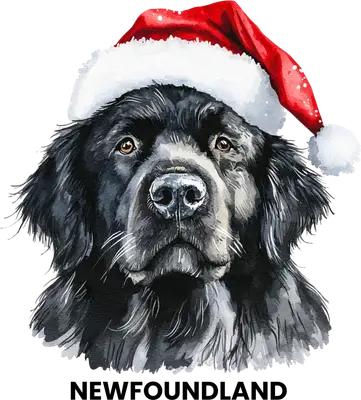 Newfoundland Dog Santa Hat Christmas DTF Transfer