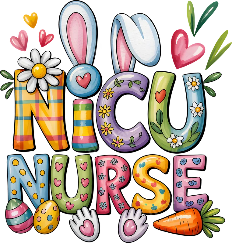 NICU Nurse Easter Bunny & Eggs DTF Transfer | Ready to Press Spring Design