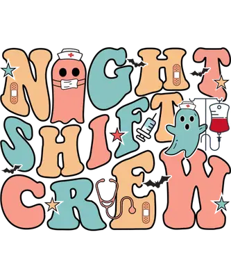 Night Shift Crew DTF Transfer | Retro Nurse Ghost Medical Spooky
