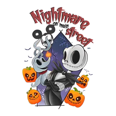 Nightmare on Main Street DTF Transfer | Jack Skellington & Zero Halloween Design