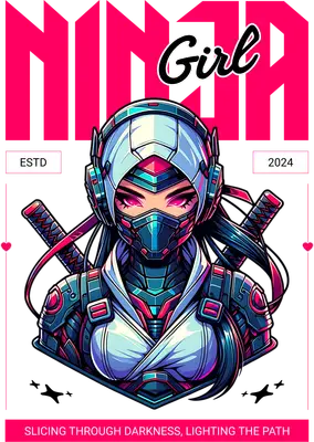 This captivating design features a futuristic Ninja Girl, exuding strength and an edgy cyberpunk aesthetic. With piercing pink eyes, a tactical mask, and sleek, glowing armor, she stands ready for action, flanked by traditional katanas. The bold 'NINJA Girl' text, rendered in a striking hot pink block font and elegant script, combined with the empowering motto 'SLICING THROUGH DARKNESS, LIGHTING THE PATH,' creates a powerful statement. This high-quality DTF transfer brings a vibrant, modern warrior spirit to any garment, making it a striking "ready to press" addition to your collection. This unique design is perfect for anime lovers, gaming enthusiasts, cosplayers, and anyone passionate about cyberpunk culture or streetwear fashion. It makes an exceptional gift for birthdays, gaming conventions, or as a distinct statement piece for personal style. Small business owners, Etsy crafters, and independent apparel brands looking for unique "heat transfer design" inventory will find this "iron on transfer" highly appealing. Create custom merchandise that stands out, whether for a themed event or just everyday awesome wear. Applying this "heat press transfer" is incredibly easy, suitable for a wide range of fabrics including cotton, polyester, cotton-poly blends, and even nylon. Achieve professional results with a heat press set at 300-325°F for 15 seconds with medium pressure, or use a household iron for smaller projects. There's no tedious weeding required—simply peel the film and press! It's ideal for transforming custom t-shirts, hoodies, sweatshirts, tote bags, pillow covers, and denim jackets. For long-lasting durability, wash your finished item inside out and tumble dry on low heat. Experience superior quality with this "ready to press transfer," featuring vibrant, full-color printing and incredibly fine detail. The advanced DTF technology ensures a crack-resistant finish that feels soft to the touch, without the heavy, stiff feel of traditional vinyl. Each "direct to film transfer" is meticulously printed on premium DTF film, engineered with a strong adhesive backing to guarantee professional and durable results for every application. Elevate your apparel with a design that truly lasts.