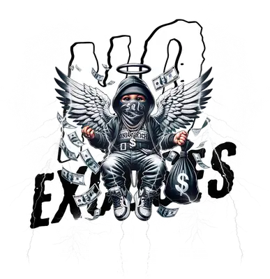 No Excuses Streetwear Hustle Baby DTF Transfer with Angel Wings