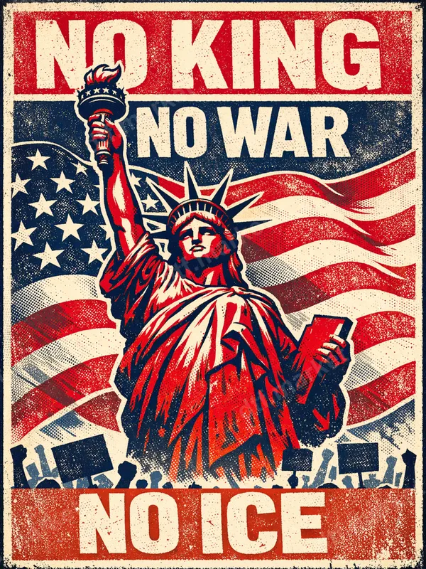 See allThe design depicts a powerful, distressed rendition of the Statue of Liberty, set against a faded American flag backdrop. Bold text declares "NO KING", "NO WAR", and "NO ICE", framing the iconic symbol of freedom with a clear message of protest and resistance. Below the Statue, a silhouette of a protesting crowd with raised fists and signs adds to the urgent, activist vibe of this unique graphic. This ready to press DTF transfer captures a vintage protest poster aesthetic, making it an impactful statement piece. This impactful design is perfect for social justice advocates, activists, patriots who believe in liberty and protest, or anyone looking to express strong opinions on political and social issues. It makes an excellent gift for friends and family engaged in advocacy, attending rallies, or simply wanting to wear their beliefs. Ideal for protests, marches, civic engagement events, or everyday wear to spark conversation and show solidarity. Our direct to film heat transfers are incredibly versatile, pressing effortlessly onto various materials including cotton, polyester, and their blends. For best results, use a heat press at 280-300°F for 6-10 seconds with medium pressure, then peel instantly. No heat press? No problem! A household iron can also be used, making application easy for everyone. Forget tedious weeding or complex layering; these ready to press designs are hassle-free. Experience superior quality with our DTF transfers. Each heat press transfer boasts vibrant, crisp colors that stand out, along with excellent durability. Our advanced DTF film ensures a crack-resistant finish that feels soft to the touch, not stiff or heavy like traditional vinyl transfer. Enjoy long-lasting wear and professional results that elevate any garment, maintaining its integrity wash after wash.