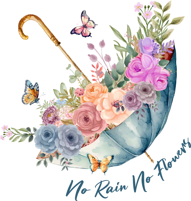 "No Rain No Flowers" Watercolor Floral Umbrella DTF Transfer