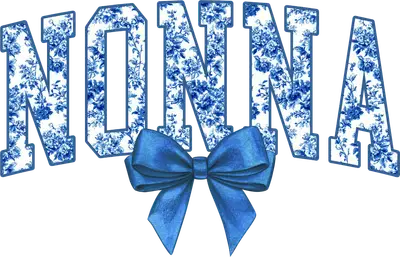 Nonna Blue Toile Floral DTF Transfer with Bow | Grandma Gift
