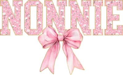 See allThis delightful DTF transfer features the beloved nickname 'NONNIE' in a charming, block letter font. Each letter is adorned with a delicate pink floral pattern, showcasing tiny white roses and subtle greenery, all framed by a sparkling gold glitter outline. Below, a beautifully rendered watercolor-style pink bow adds a sweet, elegant touch. This ready to press transfer is perfect for personalized gifts with a soft, feminine aesthetic. This versatile heat transfer design is ideal for anyone celebrating the special 'Nonnie' in their life. It's an excellent choice for Mother's Day gifts, birthday presents for grandmothers, or even to announce a new grandchild. Small boutique owners, Etsy crafters, and DIY enthusiasts will find this iron on transfer perfect for creating unique, heartfelt items. Show your appreciation and love with this adorable design. Applying this heat press transfer is simple and efficient, adhering beautifully to cotton, polyester, blends, and nylon. For best results, use a heat press at 300-325°F for 15 seconds with medium pressure, or apply with a household iron. No weeding involved – just peel and press! Create custom t-shirts, cozy hoodies, stylish tote bags, baby onesies, or aprons. For lasting durability, wash garments inside out and tumble dry low. Our ready to press transfer ensures vibrant, full-color printing with fine detail. The result is a soft, crack-resistant finish that feels natural on fabric, unlike heavy vinyl transfers. Each direct to film transfer is meticulously printed on premium DTF film, engineered with a strong adhesive backing to provide professional, long-lasting results every time. Elevate your apparel projects with this high-quality transfer.