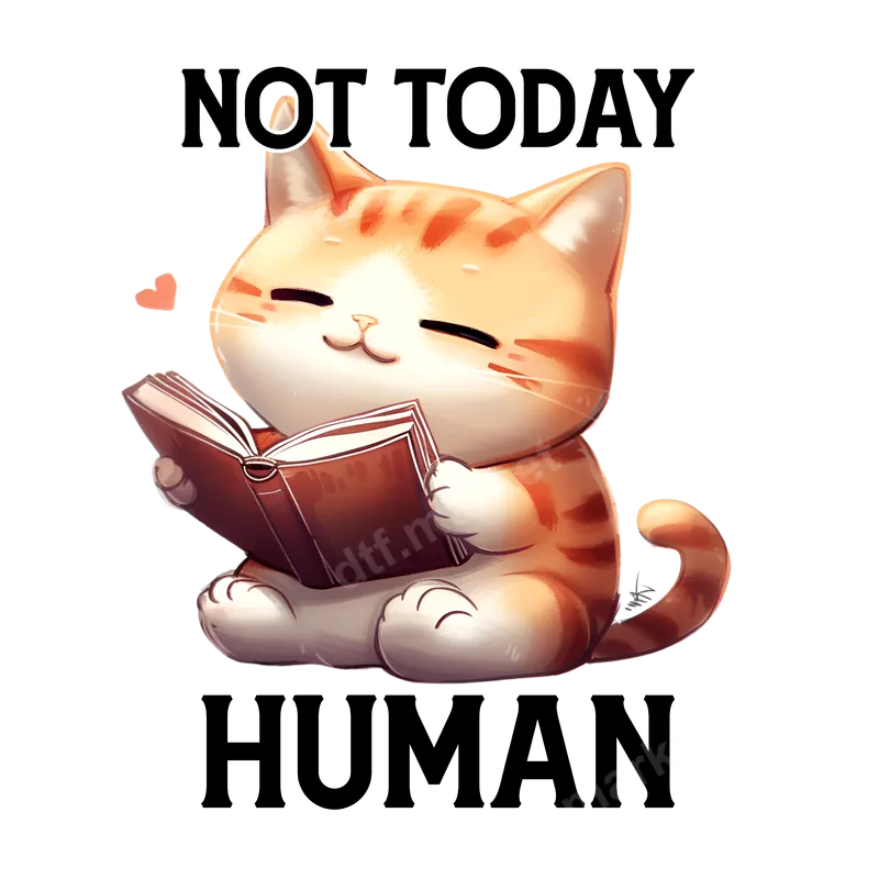 Not Today Human Kawaii Cat DTF Transfer - Book Lover Iron On