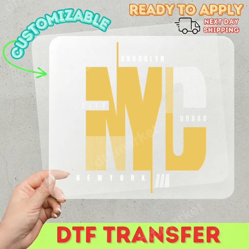 See allThis vibrant DTF transfer features a bold, stylized "NYC" graphic, subtly incorporating "BROOKLYN," "CITY," "URBAN," and "NEW YORK" in a modern, geometric font. Its contemporary design captures the dynamic energy of the city, making it a perfect ready to press design for personalizing apparel. This high-quality DTF transfer ensures a sharp and professional look on any garment. Ideal for New York City enthusiasts, Brooklyn residents, tourists, or anyone who loves urban streetwear aesthetics. This versatile heat transfer makes an excellent gift for birthdays, travel souvenirs, or simply to express city pride. Use this unique heat press transfer to create custom merchandise for local businesses or add a personal touch to your wardrobe. Applying this design is straightforward. Our heat press ready transfers work flawlessly on a wide range of materials, including cotton, polyester, and various fabric blends. For best results, use a heat press at 300-325°F for 15 seconds with medium pressure. It can also be applied with a household iron. Best of all, there's no tedious weeding required like with traditional vinyl transfer projects. Experience superior quality with every application. Our transfers are designed to be incredibly vibrant, crack-resistant, and feature a soft, flexible feel on the fabric. Crafted using professional DTF film and strong adhesive, this iron on transfer is built to last, providing durable, wash-resistant results for all your custom apparel needs.