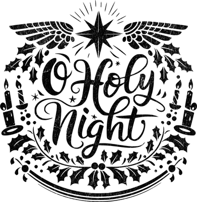 O Holy Night Christmas Carol DTF Transfer | Holly Star & Candles