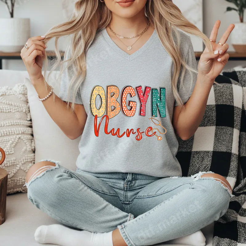 See allThis vibrant DTF transfer proudly displays 'OBGYN Nurse' in a playful, eye-catching design. The 'OBGYN' text features cheerful patterns like stars, hearts, and dots in a lively palette of yellow, orange, red, and teal. 'Nurse' is elegantly scripted in bold red, complemented by a subtle stethoscope graphic, making it a perfect tribute to the dedicated professionals in obstetrics and gynecology. It's a ready to press transfer, making customization quick and easy for anyone looking to personalize their apparel. This unique design is ideal for OBGYN nurses, nursing students, medical professionals, and anyone who wants to celebrate the vital work of women's health providers. It makes a thoughtful gift for Nurse Appreciation Week, graduations, new job celebrations, birthdays, or simply as an everyday expression of pride in their demanding and rewarding career. Friends, family, and colleagues can also use this design to create special gifts for their favorite OBGYN nurse. Our premium heat transfer works perfectly on a wide range of fabrics, including cotton, polyester, and their blends, offering incredible versatility. Application is straightforward: press at 300-325°F for 15 seconds with medium pressure. This ready to press transfer requires no weeding, saving you time and effort. Whether you use a professional heat press or a household iron on application, you'll achieve a smooth, professional finish with minimal fuss. Experience the superior quality of our DTF transfers. These transfers are known for their vibrant colors that resist cracking and fading, ensuring your design looks fresh wash after wash. The print boasts a soft-to-touch feel, seamlessly integrating with your garment. Made with professional-grade DTF film and strong adhesive, this t-shirt transfer provides exceptional durability and a truly professional look for all your custom apparel projects.