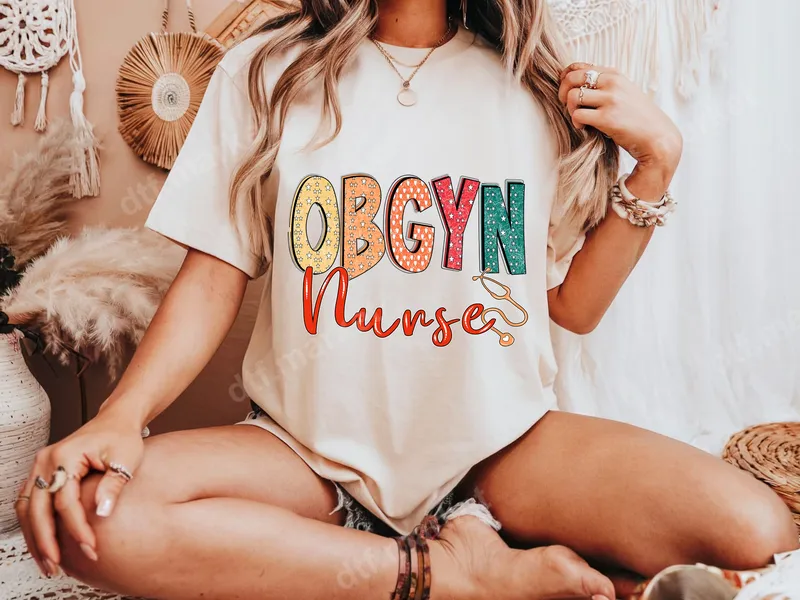 See allThis eye-catching "OBGYN Nurse" DTF transfer features a playful yet professional design, perfect for celebrating the dedication of women's health professionals. The bold letters of "OBGYN" are filled with unique patterns like stars, dots, and hearts in cheerful yellow, orange, pink, and teal, while "Nurse" is elegantly scripted in a vibrant red-orange, complete with a subtle stethoscope graphic. This high-quality direct to film transfer is ready to press onto your favorite apparel, making customization quick and easy. Ideal for OBGYN nurses, nursing students, and anyone wanting to show their appreciation for the vital work they do. This ready to press transfer makes a fantastic gift for Nurses Week, graduation ceremonies, birthdays, or just because. Create custom shirts for your team, a memorable present for a mentor, or a proud statement piece for yourself. It's a thoughtful way to acknowledge the compassion and skill of these essential healthcare workers. Our durable heat press transfer works seamlessly on a wide range of fabrics, including 100% cotton, polyester, and various blends. Applying this iron on transfer is simple with a heat press set to 300-325°F for 15 seconds with medium pressure, followed by a cold peel. For those without a professional heat press, a household iron can also be used with careful application. Best of all, there's absolutely no weeding required, saving you time and effort. Experience professional results with our premium DTF film. Each t-shirt transfer boasts vibrant colors that pop, exceptional wash durability, and resistance to cracking or peeling. The design feels soft to the touch, seamlessly integrating with the fabric. Our strong adhesive ensures your apparel transfer will last, maintaining its quality through countless washes and wears, making it a reliable choice for long-lasting custom garments.