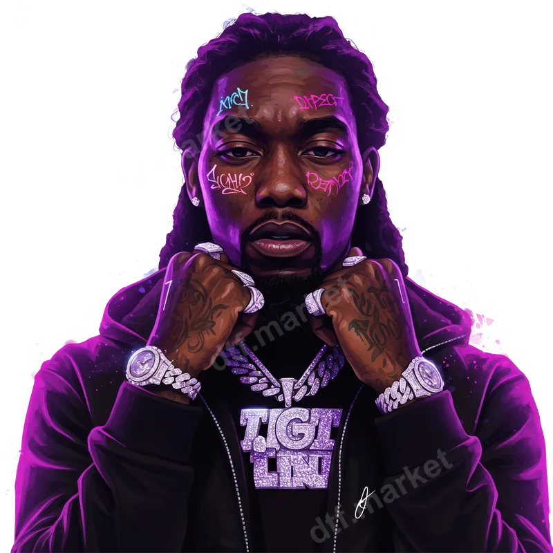 Offset Rapper Portrait DTF Transfer for Hip-Hop Apparel