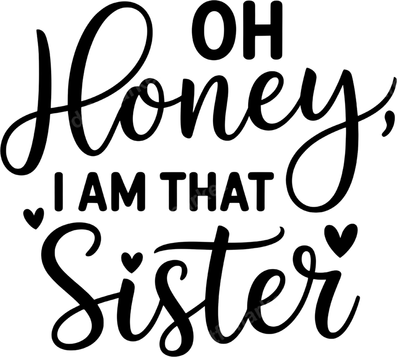 See allThis bold and sassy DTF transfer features the playful phrase 'OH Honey, I AM THAT Sister' in a stylish mix of elegant script and strong sans-serif typography, accented with charming little hearts. It's a perfect design for the sister who owns her personality and brings the fun to any family gathering or girls' trip. This eye-catching heat press design is ready to press straight onto your chosen garment, making custom apparel creation simple and fast. Ideal for sisters, best friends, aunts, or anyone who fits the 'that sister' description, this design makes a fantastic gift for birthdays, holidays, or just because. Imagine creating matching shirts for a sisters' weekend, family reunion, or a casual get-together. It’s also a great way to show off your unique bond and sense of humor on everyday wear, whether it's a casual outing or a special event. Our premium DTF transfer is incredibly versatile, designed to adhere beautifully to a wide range of fabrics including cotton, polyester, and blends. Application is a breeze: use a heat press at 300-325°F for 15 seconds with medium pressure, or apply with a household iron. Unlike vinyl, this ready to press transfer requires absolutely no weeding, saving you time and effort. You'll have a professional-looking t-shirt transfer in minutes! Experience superior quality with this durable and vibrant apparel transfer. Our direct to film transfers boast exceptional color retention, crack resistance, and a soft-to-touch finish that feels great on any garment. Printed on professional-grade DTF film with strong adhesive, this heat press transfer ensures your designs stay put and look fantastic wash after wash. Create custom shirts, hoodies, bags, and more with confidence.
