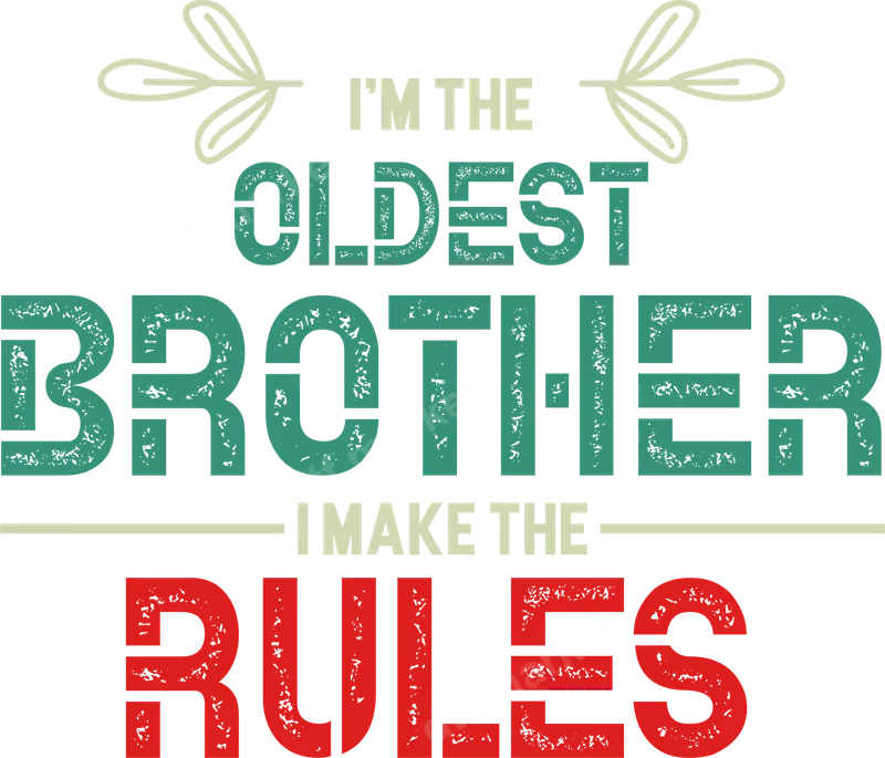 See allThis playful "I'M THE OLDEST BROTHER I MAKE THE RULES" DTF transfer is perfect for any big brother embracing their family role. Featuring a distressed, bold font in teal, red, and beige with subtle leaf details, this ready to press transfer captures a fun, mischievous vibe. It's an instant classic for proudly displaying oldest sibling status with humor, making it a standout apparel transfer for any occasion. This design is ideal for gifting on birthdays, Father's Day, Christmas, or just to celebrate a special oldest brother, uncle, or family patriarch. It’s perfect for family gatherings, reunions, or casual wear, sparking smiles and nods of agreement. Whether for yourself or as a humorous present, this heat press design celebrates unique family bonds and playful sibling dynamics. Applying this vibrant heat transfer is straightforward for crafters. It works seamlessly on cotton, polyester, and blends. For optimal results, use a heat press at 300-325°F for 15 seconds with medium pressure, followed by a cold peel. A household iron also achieves great results. No weeding is required, making your iron on decal project quick and effortless. Our professional-grade DTF transfers deliver exceptional quality. Your design will be vibrant, soft to the touch, and highly crack-resistant. The specialized DTF film and strong adhesive provide excellent wash durability for long-lasting wear. Enjoy a premium, professional finish that makes your customized t-shirts, hoodies, or other garments truly unique and durable.