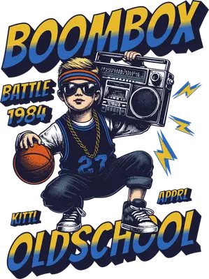 Oldschool Boombox Battle 1984 Basketball Kid DTF Transfer
